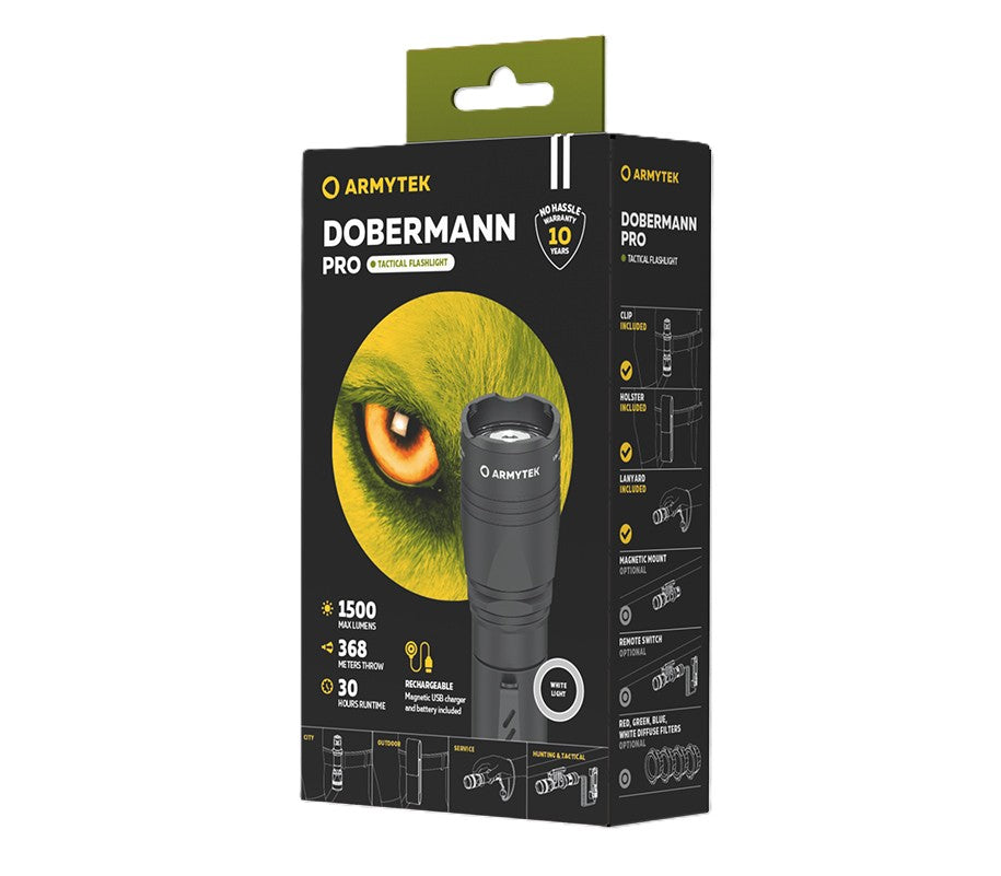 The Armytek Dobermann Pro Magnet USB is a high-performance tactical flashlight designed for users who demand reliability in extreme conditions. Compact yet powerful, it delivers up to 1500 lumens with a focused beam reaching 368 metres, making it ideal for outdoor use, property management, emergency preparedness, and everyday carry.