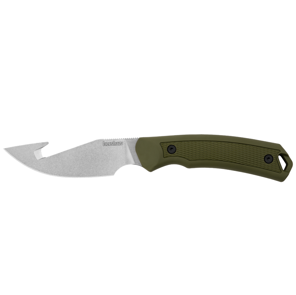 Step into the wild with confidence using the Kershaw Deschutes Skinner Gut Hook—a purpose-built fixed-blade designed for hunting, skinning and field processing. With a hardened D2 tool steel blade measuring 3.9″ (9.9 cm) and finished in a rugged stonewash texture, this blade retains its edge under tough outdoor conditions while hiding scratches and wear.