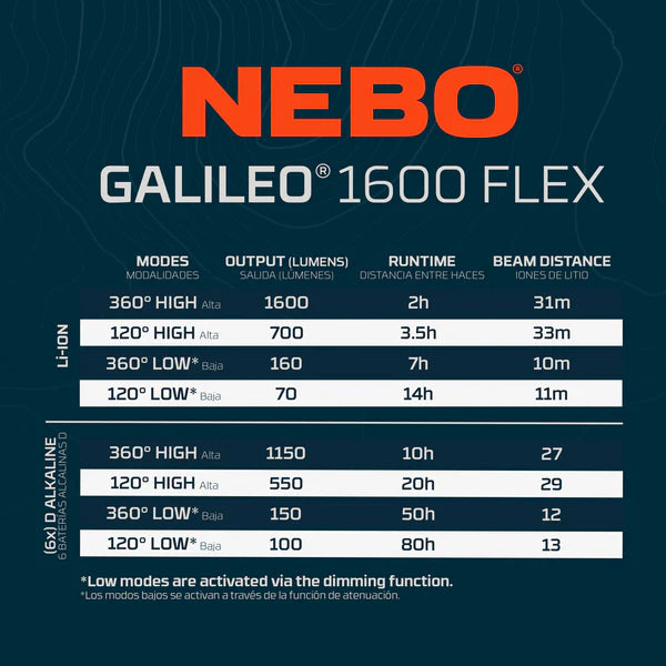 Light your next adventure with the NEBO Galileo™ 1600 FLEX Rechargeable Lantern & Power Bank, the ultimate all-in-one lighting solution for campers, travellers, and outdoor enthusiasts. Designed for performance and practicality, this powerful lantern delivers up to 1600 lumens of bright, uniform light with adjustable modes to suit every situation — from illuminating large campsites to providing a warm ambient glow for late-night gatherings.