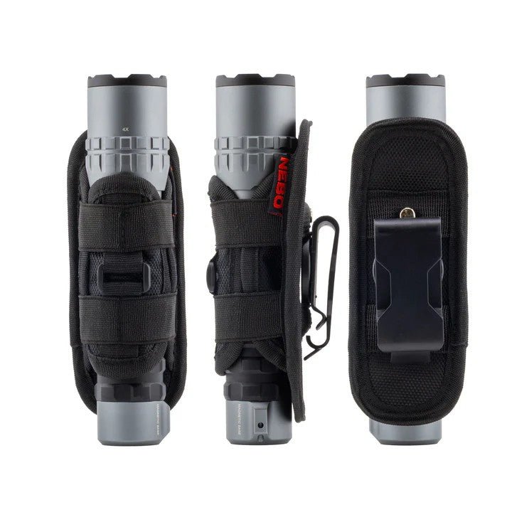 The NEBO Flashlight Holster is designed as a universal-fit holder and is compatible with the majority of NEBO’s most popular torch models. This holster securely fits torches up to approximately 155mm tall × 61mm wide, including: