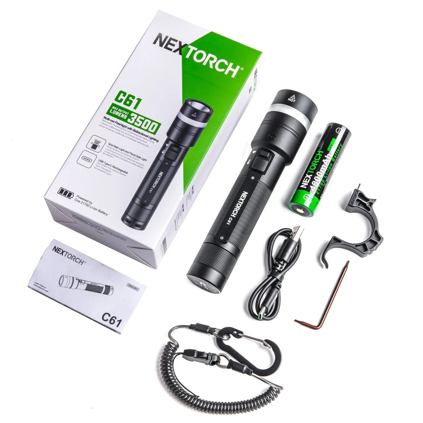 Illuminate your adventures with the NEXTORCH C61 Dual Beam Flashlight, delivering a powerful 3500 lumens of brightness in a compact, rugged design. Built for outdoor enthusiasts, professionals, and everyday users, the C61 combines cutting-edge technology with intuitive functionality to give you reliable lighting in any situation.