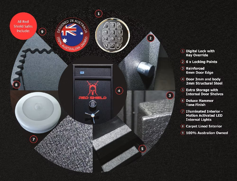 As part of the trusted Red Shield range — Australian-owned and engineered — the RS16 strikes the ideal balance between strength, capacity, and everyday usability. Whether you’re upgrading your storage or securing a growing collection, the RS16 delivers dependable protection without compromise.