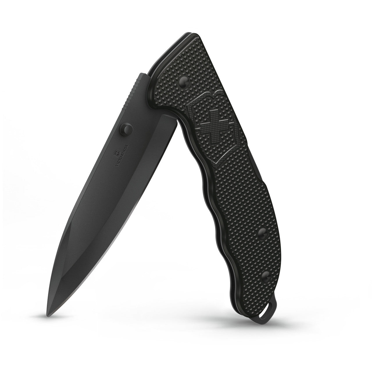 The blacked-out 95mm drop-point blade is made from premium stainless steel for exceptional sharpness, edge retention, and corrosion resistance. Its matte black Alox aluminum handle is not only lightweight but offers a tough, non-slip grip even in wet or muddy conditions.